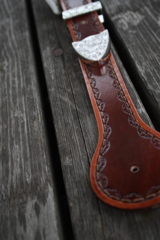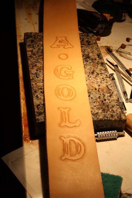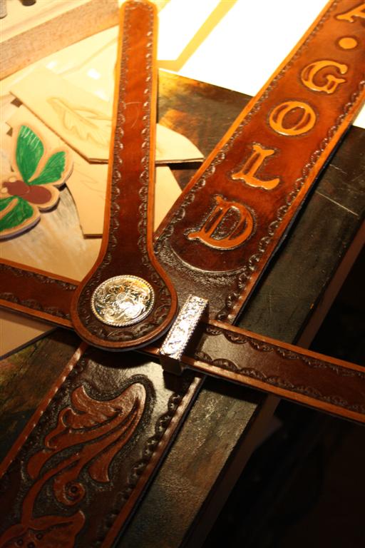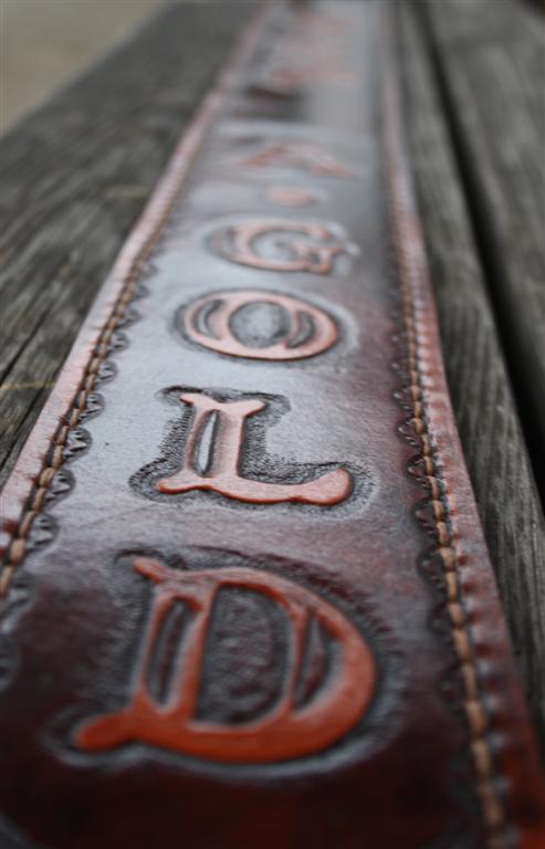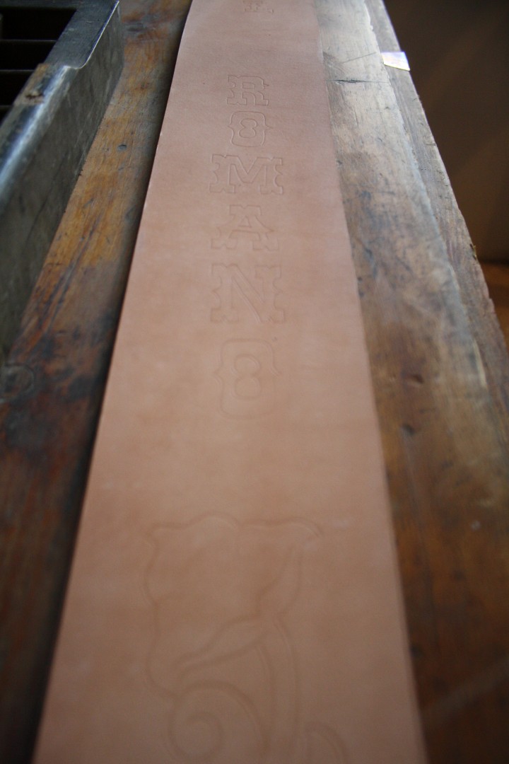 Afterwards, I started punching holes in a custom guitar strap. All that’s left now is the stitching and the edging. Whew! This one has been a doooooooozy.
